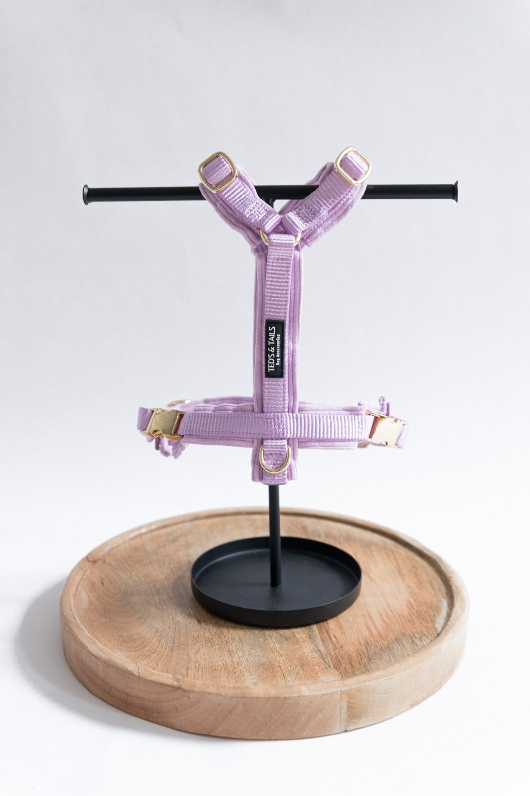 Ben je op zoek naar de mooiste accessoires voor jouw hond die aan de huidige trends voldoen? Dan is dit hondentuigje uit de Lovely Lavender collectie precies wat je nodig hebt! Mix & Match met alle andere producten uit deze collectie om de look compleet te maken.Het hondentuigje is gemaakt van sterk nylonriem en cord, waardoor het bijzonder comfortabel en zacht is. De gespen en ringen zijn goudkleurig en sterk. De grootte en breedte van de riemen, gespen en ringen zijn afgestemd op de maat van het tuigje.
