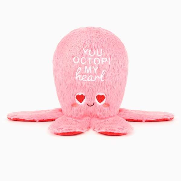 Vier Valentijnsdag met dit zachte knuffelvriendje, de Valentijn Octopus! Deze schattige octopus is gemaakt van pluizig roze pluche en is superzacht en perfect om mee te knuffelen. Bevat een pieper.